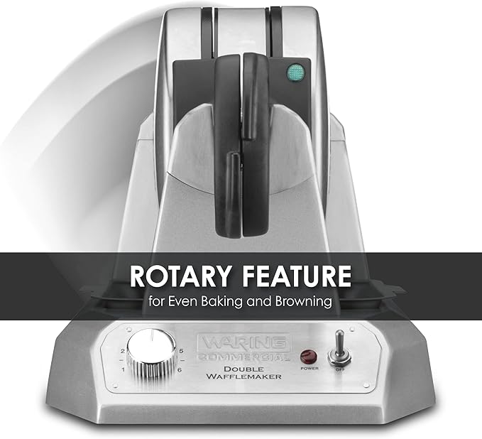 - Double vertical Belgian waffle maker features heavy-duty commercial construction for durability