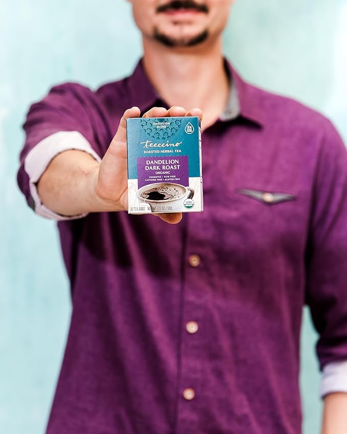 Teeccino Dandelion Dark Roast Tea - Caffeine Free, Organic, Roasted Herbal Tea with Prebiotics, 3x More Herbs than Regular Tea Bags - Gluten-Free, Acid-Free Coffee Alternative - 10 Tea Bags