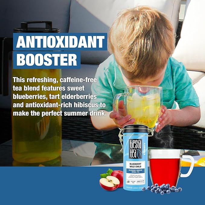 - BLUEBERRY HIBISCUS HERBAL TEA: Refresh your senses with Tiesta Tea’s Blueberry Wild Child blend. This vibrant herbal tea combines sweet blueberries, tangy elderberries, and fragrant hibiscus, offering a caffeine-free, fruity infusion perfect for any season—hot or iced.