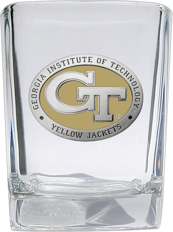Heritage Pewter GT Square Shot Glass | Hand-Sculpted 1.5 Ounce Shot Glass | Intricately Crafted Metal Pewter Alma Mater Inlay