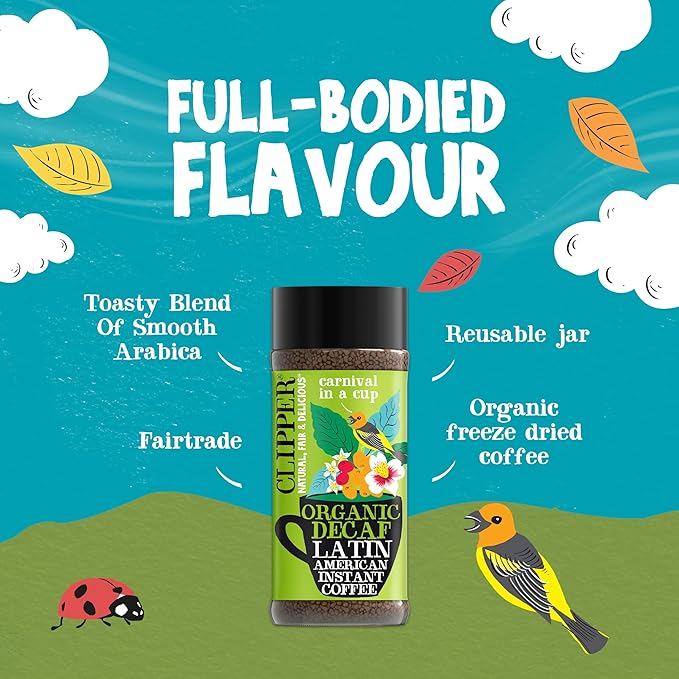 Clipper Coffee, Latin American Arabica, Organic Decaf Instant Coffee, Medium Roasted, Freeze Dried, Ethically Sourced, 6 Pack, 3.53oz