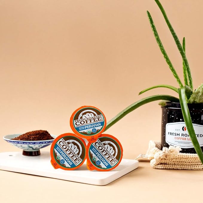 Fresh Roasted Coffee, Organic Peru Water-Processed Decaf | Mold & Myco 3rd Party Tested, USDA Organic, Kosher | Med Roast 72 Pods for K Cup Brewers