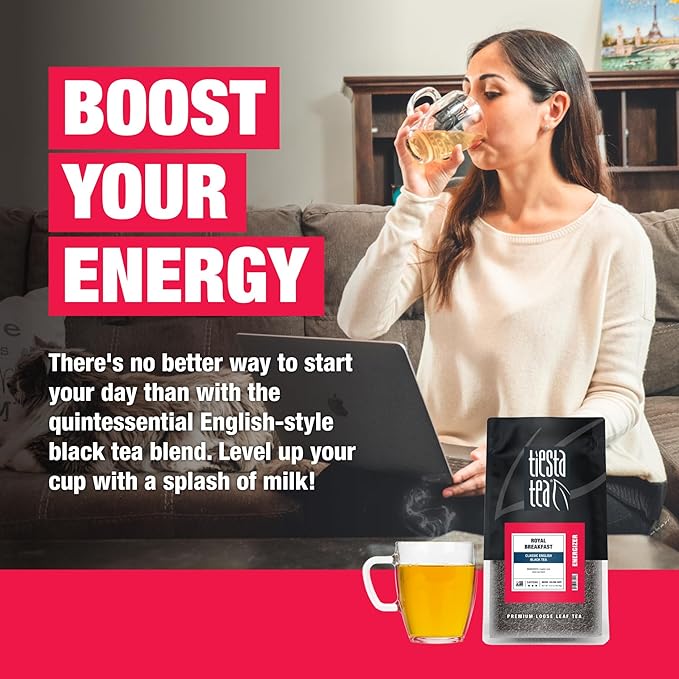 Tiesta Tea - Royal Breakfast, Loose Leaf, Classic English Black Tea, Premium High Caffeine Hot & Iced, Brews up to 200 Cups, 16oz Resealable Bulk Pouch