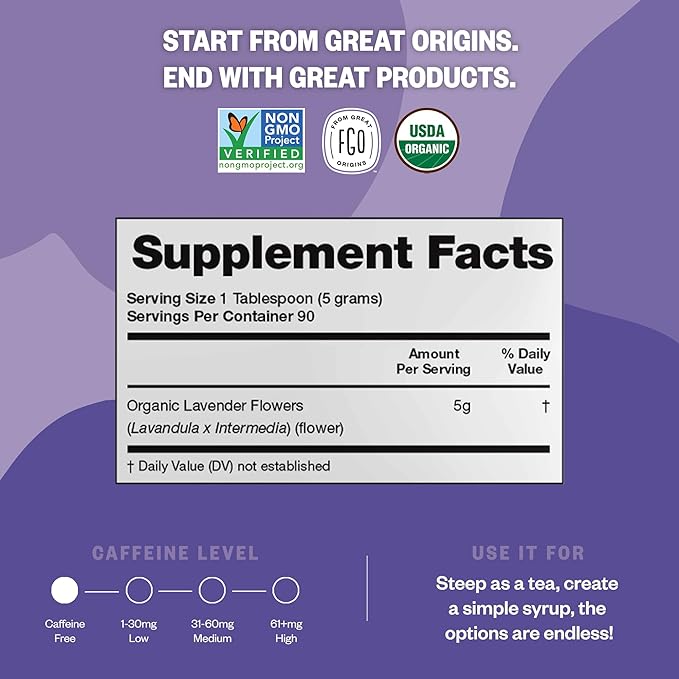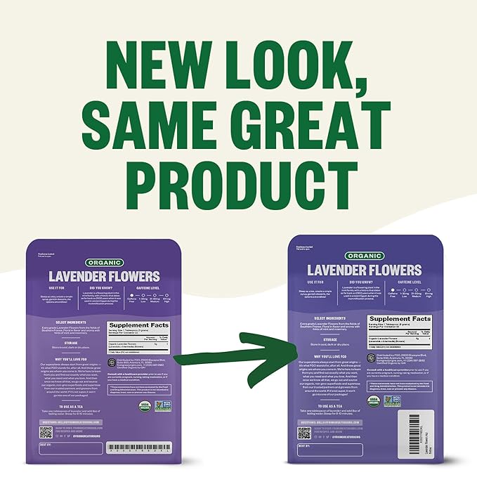 FGO Organic Dried Lavender Flowers, Extra Grade Dried Buds, Imported From France for Culinary or Sachet Bags, 4oz, Packaging May Vary (Pack of 1)