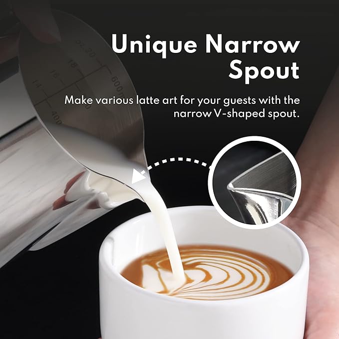 - Made from durable, high-quality stainless steel to efficiently conduct heat and keep the temperature consistent as you steam milk