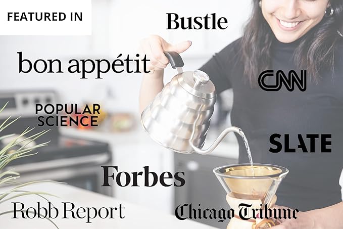 - BUILT-IN THERMOMETER: It provides a perfect temperature. Water that is too hot will burn your coffee. If it is too cold, you won’t extract the full consistency of the beans. Our stainless kettle comes with an auto temperature gauge which allows you to brew your pour over coffee at the optimal temperature (195-205°F). Make a perfect cup of coffee every time with our easy to read coffee thermometer!