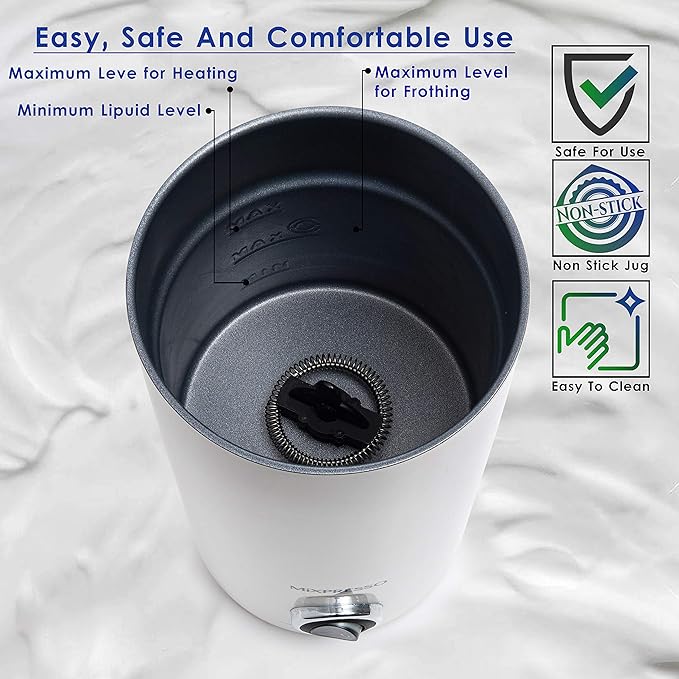 - Durable Design: The double-wall stainless steel milk frother and steamer ensures safety; the non-stick interior makes cleaning easy