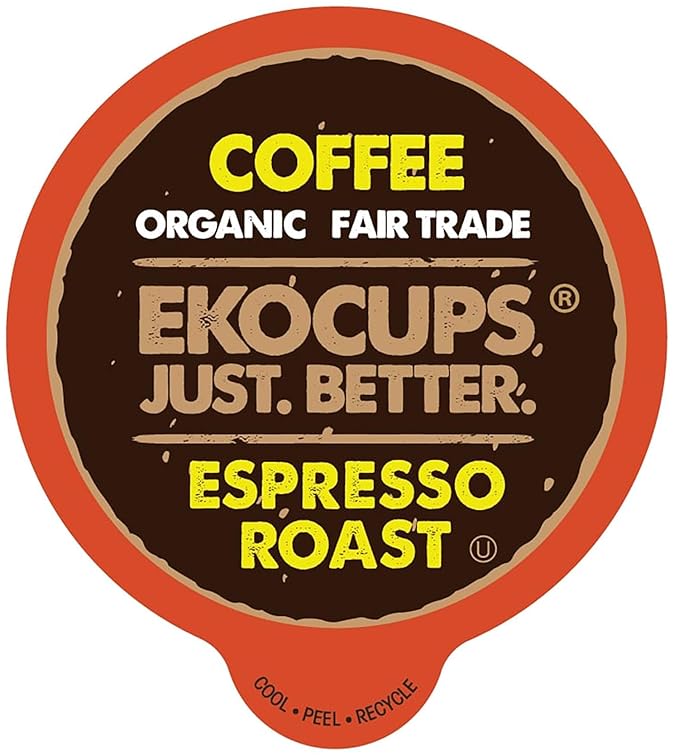 EKOCUPS Organic Espresso Roast Coffee Pods, Extra 30% More Coffee Per Cup, Artisan Fair Trade Dark Roast, Espresso Coffee for Keurig K Cup Machines, Recyclable Pods, 40 Count