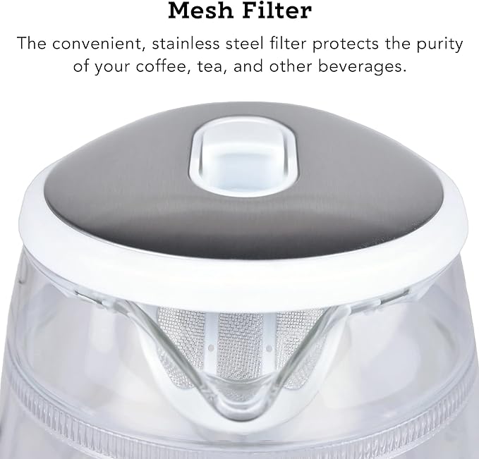 - Double-Walled Construction: Inner glass wall with a plastic outer layer adds durability and protects you from burns when the electric water kettle is hot while keeping your water safe from plastic contact