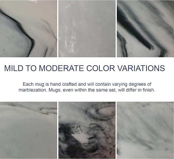 - Easy Grip Handle and Elegantly Unique Marbleized Pattern on Every Mug, No Two Mugs are like. The mugs you receive will be similar to the ones in the photo, variances occur in the Marbleized Patterns due to the individual craftsmanship of these mugs.