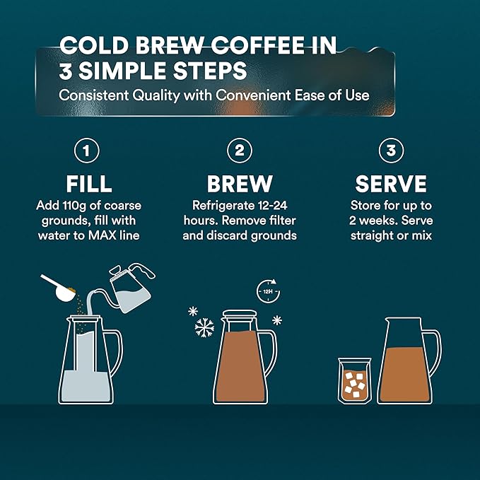 - HEALTHIER & SMOOTHER COFFEE, NOW BIGGER AND BETTER – Cold brewing is 70% less acidic than hot brewing. And richer in taste. Our cold brew pitcher extracts coffee concentrate which can be stored and mixed with an endless variety of beverages to create your own perfect, personal cup of joy. Now 1.5x bigger than the original, get ready for more coffee! Recommended grind size: Coarse