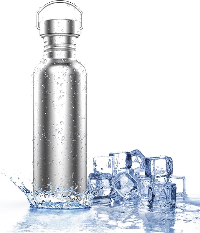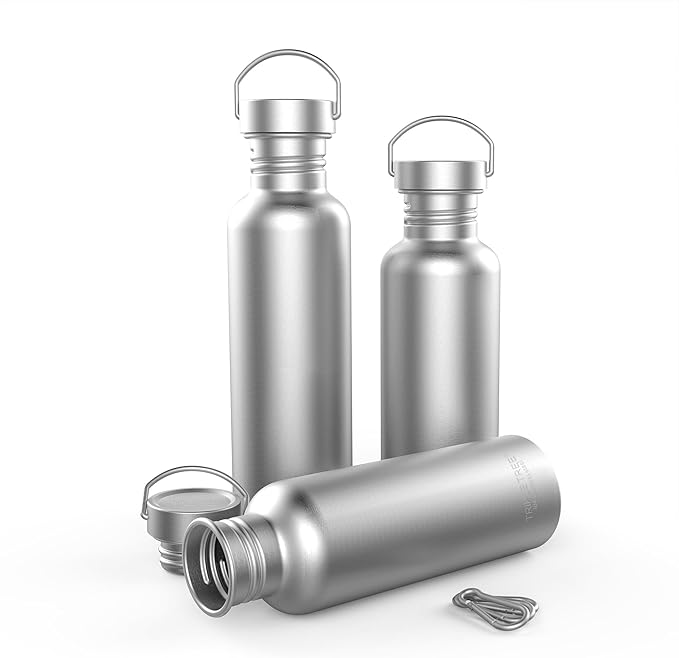 TRIPLE TREE 34 OZ Uninsulated Single Walled Stainless Steel Sports Water Bottle 18/8 Food Grade for Cyclists, Runners, Hikers, Beach Goers, Picnics, Camping - BPA Free