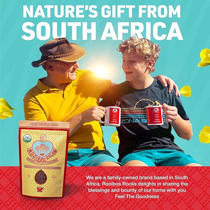 - SUSTAINABLY AND ETHICALLY GROWN - Our South African red rooibos tea organic is grown without the use of synthetic pesticides, which is confirmed by our USDA organic certification. Further, we support the farmers and their families who grow our Rooibos Rocks Red Tea.