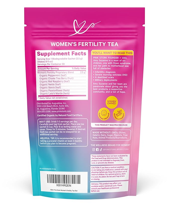 - 1 out of every 6 couples have trouble conceiving - and Pink Stork Fertility Tea includes seven USDA organic herbs to support YOU! Chaste Tree Berry (Vitex), Peppermint, Red Raspberry Leaf, Lady's Mantle, and Stinging Nettle have been used for centuries to promote hormone balance for women, regular menstrual cycles, and support overall reproductive well-being.