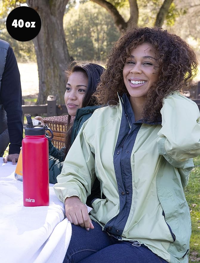 MIRA 40 oz Insulated Water Bottle - Stainless Steel Sports Flask with 2 Lids (Straw & Handle) - Cold Drink Thermo - Teal