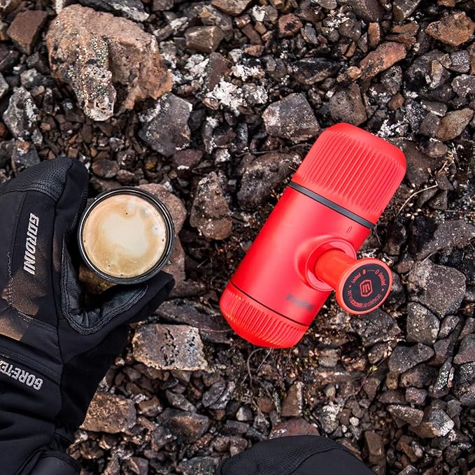 WACACO Nanopresso Portable Espresso Maker, Upgrade Version of Minipresso, 18 Bar Pressure, Mini Travel Coffee Machine, Manually Operated, Perfect for Camping and Hiking, Red