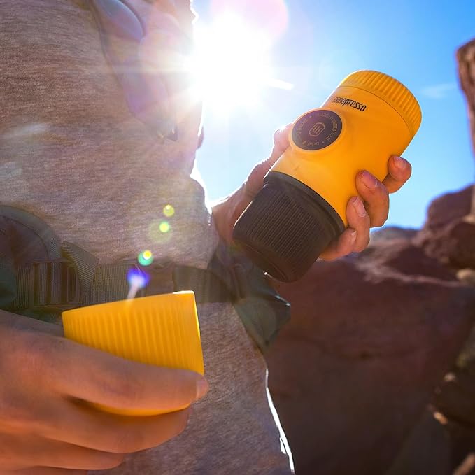 WACACO Nanopresso Portable Espresso Maker, Upgrade Version of Minipresso, 18 Bar Pressure, Mini Travel Coffee Machine, Manually Operated, Perfect for Camping and Hiking, Yellow