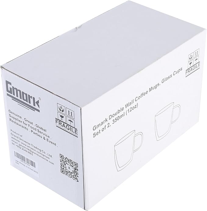 Gmark Large Coffee Mugs Set of 2 (12 oz, 350 ml), Double Wall Tumbler Glass Cup, Insulated Coffee Cups for Tea, Latte, Espresso, Juice, or Water GM2029