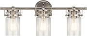 - The 3 light vanity light Brinley is perfect above a mirror in a bathroom or powder room.