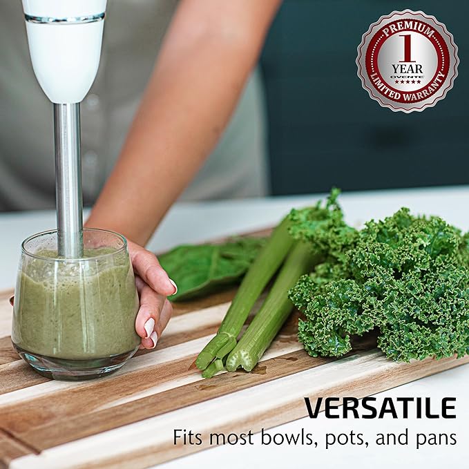 - WHIP HAPPINESS INTO YOUR KITCHEN – Create sauces, dips, purees, protein shakes and smoothies in a flash with this powerful immersion blender featuring a 300-watt motor. It effortlessly blends ingredients together, making it perfect for preparing delicious and healthy smoothies, pureed soups, marinades, juices and much more in no time. Ideal for busy mornings or when you need a quick, nutritious meal or snack.