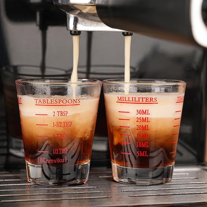Shot Glasses Measuring cup Espresso Shot Glass Liquid Heavy Glass Wine Glass 2 Pack 26-Incremental Measurement 1oz, 6 Tsp, 2 Tbs, 30ml (Black and Red)