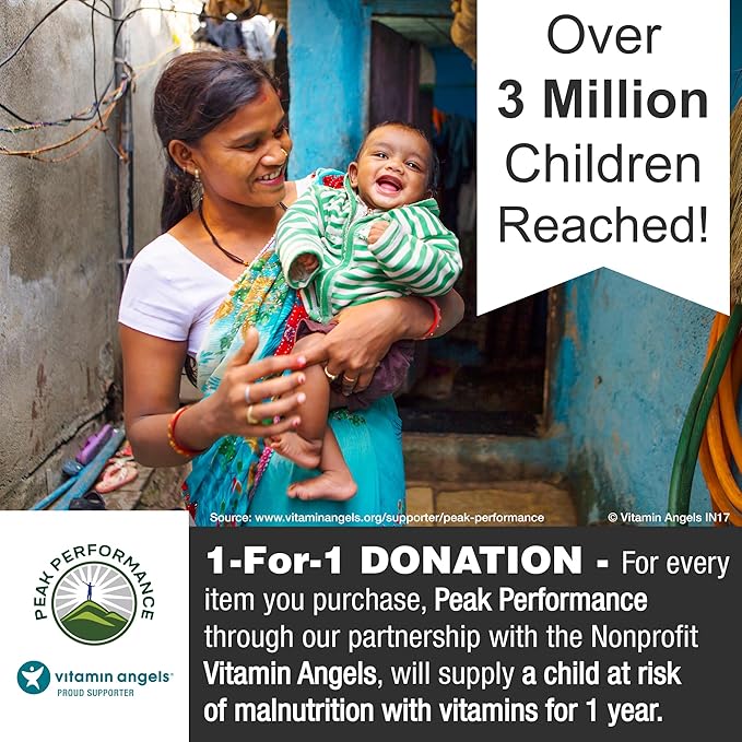 - Over 1 Million Customers + 1-for-1 Donation To Vitamin Angels. Peak Performance is celebrating over 1 Million customers and we are also very proud of our 1-for-1 donation match program. For every unit you purchase, through our partnership with the nonprofit Vitamin Angels, we will supply a child at risk of malnutrition with vitamins for 1 year! To date, we've supplied over 3 Million children with life changing Vitamins- So thank you for helping us continue this great cause!