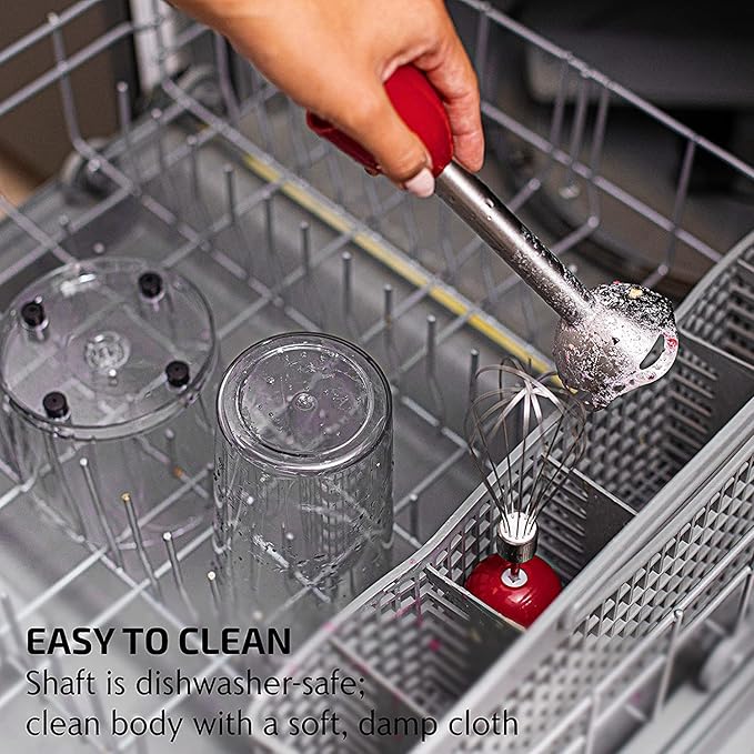 - SUPER EASY TO CLEAN – All parts of this handheld blender are detachable for easy cleaning. The detachable shaft, whisk, chopper and beaker can be placed in the dishwasher or rinsed under running water, while the motor body can be simply wiped down with a soft, damp cloth. These parts come apart and snap back together with ease, making cleanup a breeze.
