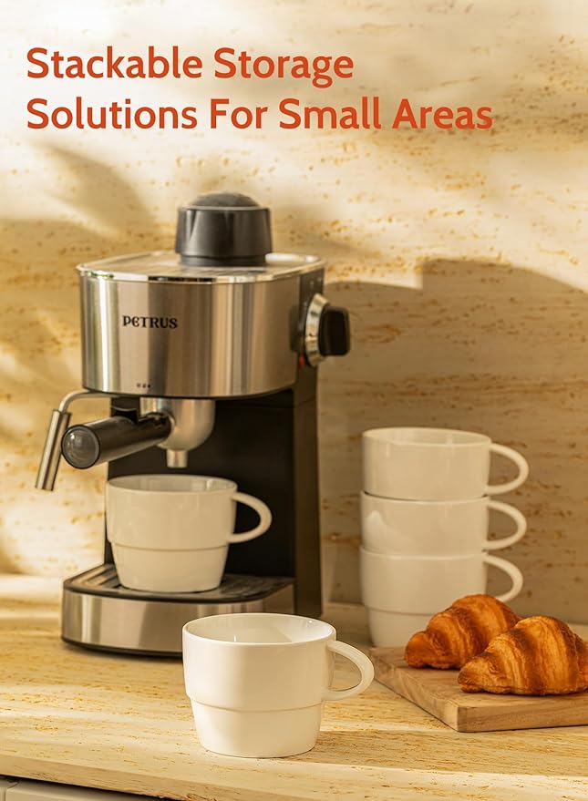 - MAXIMIZE KITCHEN SPACE: Embrace elegance without sacrificing space with our stackable latte cups, designed to neatly stack, freeing up valuable cabinet real estate while adding a touch of modernity to your kitchen decor.