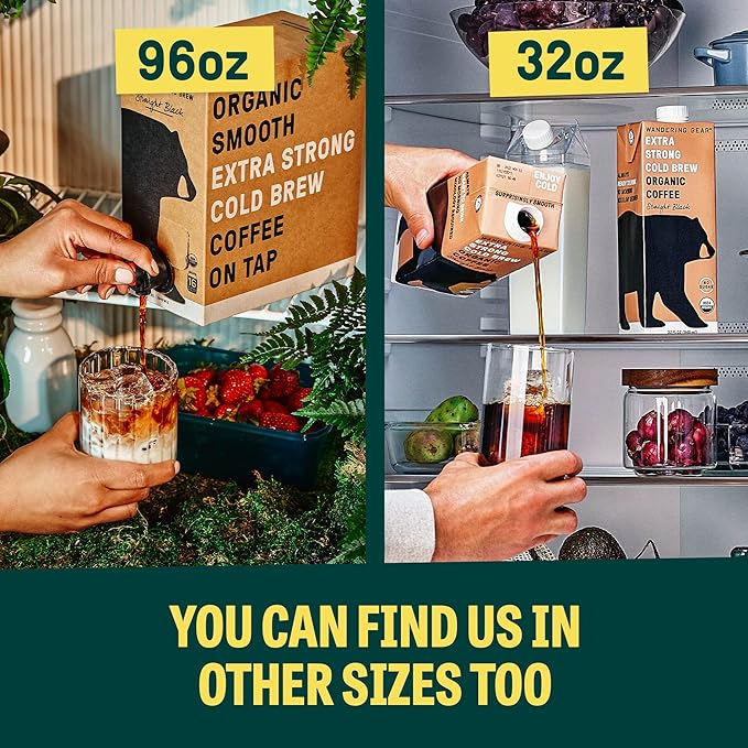 Wandering Bear Straight Black Organic Cold Brew Coffee On-the-Go, 11 fl oz, 12 pack - Extra Strong, Bold, Smooth, Unsweetened, Shelf-Stable, Ready to Drink, 100% Organic Iced Cold Brewed Coffee Drinks