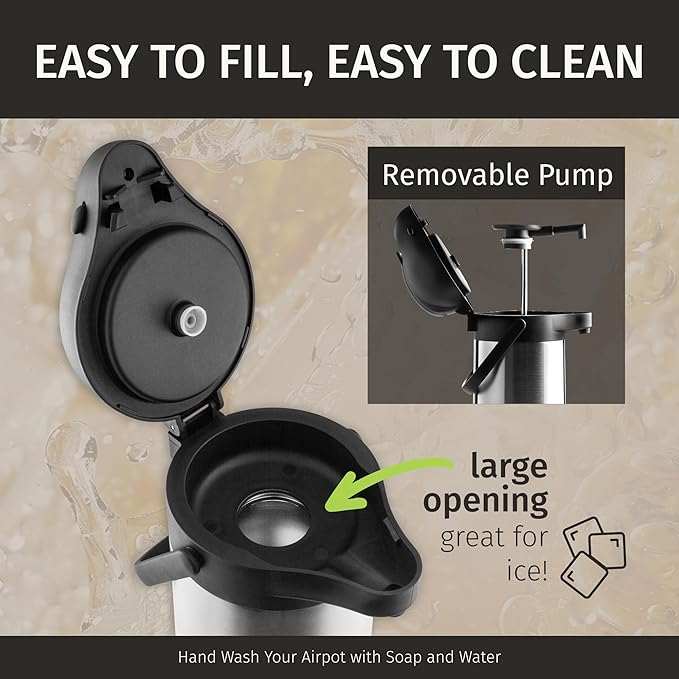 - Simple Cleaning & Filling Coffee Urn: Large mouth opening for easy filling and cleaning; removable top for quick access, making maintenance straightforward on the large coffee carafe