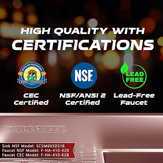 - Complete Package: Includes NSF and CEC certified lead-free faucet (NSF Model: F-HA-410-K28) for safe water usage. Triple sink design w/ three compartment sink commercial grade construction. Perfect for washing and rinsing in professional environments