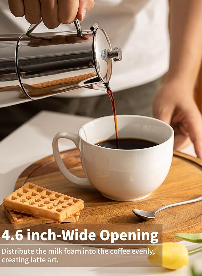 - Wide Mugs, A Favorite of Latte Lovers - Normal coffee mugs are not big enough to make the perfect latte. Teocera white mugs have a wide opening(4.6 inches) to distribute the milk foam into the coffee evenly, creating latte art. Everyone has a chance to be a barista.