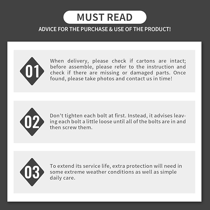 - After-Sales: If there are any issues of assembly, damaged or missing parts, or other problems of product quality, please feel free to contact us, and our after-sales team will respond to you within 24 hours with the powerful solutions, including replacement, or return & refund.