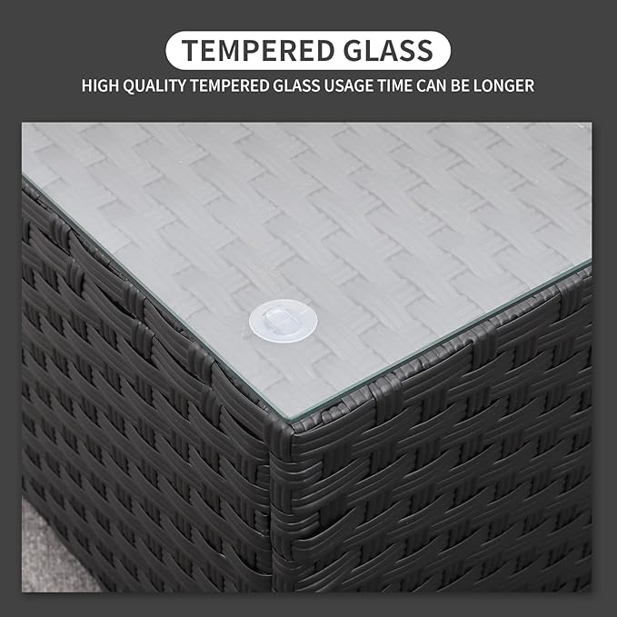 Rattaner Patio Furniture Wicker Coffee Table Outdoor Garden Square Side Table with Tempered Glass Top Black