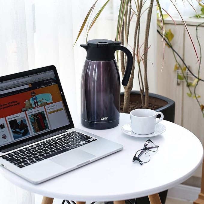 - USER FRIENDLY: GiNT thermal carafe features extra wide top opening, easy for cleaning and adding ice cubes; Simple-push button enables single-hand pouring without leaking, dripping or spilling; Ideal used for bedside, restaurant, office, party, camping, travel insulated coffee carafes.