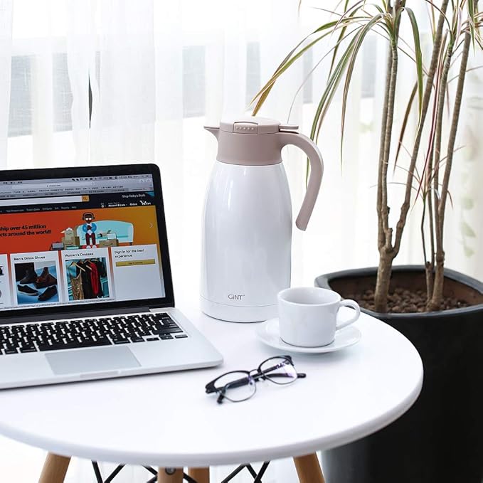GiNT 1.9L / 64Oz Thermal Coffee Carafe, Insulated Stainless Steel Coffee Carafes for Keeping Hot/Double Walled Vacuum Thermal Carafe (White)