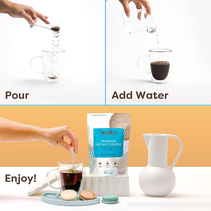 - Convenient and Affordable: At Waka, we know instant beverages the best, because it is all we do. Designed for home and office use, camping, and for those constantly on-the-go, delight in the ease and quickness of a coffee made with only 3 steps - pour, mix, and enjoy.
