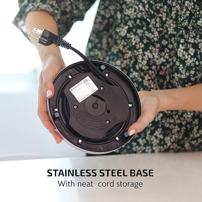 OVENTE 1.7L Electric Kettle, 1500W Fast Boiling Water Heater for Coffee or Tea with Stainless Steel BPA-Free and Cordless Body, Auto Shut-Off, Boil-Dry Protection and Removable Filter, Silver KS777S