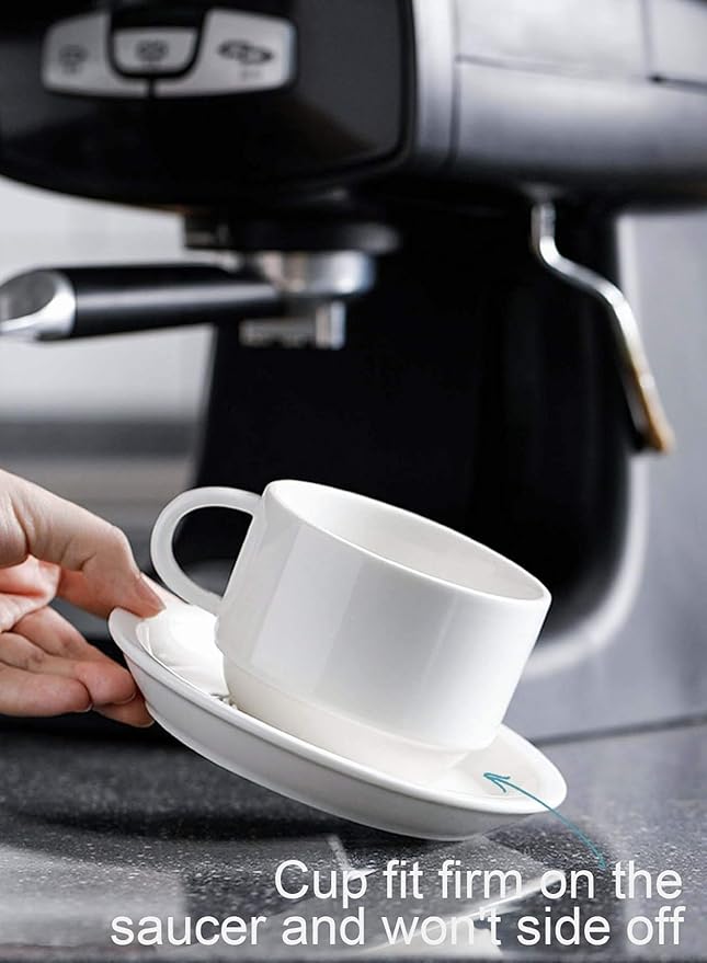 - PERFECT COFFEE EXPERIENCE SELECT: Experience the perfect blend of simplicity and sophistication with our 8 oz Cappuccino Cups. Designed to effortlessly complement your espresso maker, this set includes saucers and a convenient stacking stand. The thick cup walls excel at heat retention, ensuring your brew stays warm. Transport yourself to a cozy café as you savor your coffee, thanks to their authentic cafe-inspired aesthetics. Elegance meets functionality for your coffee moments.