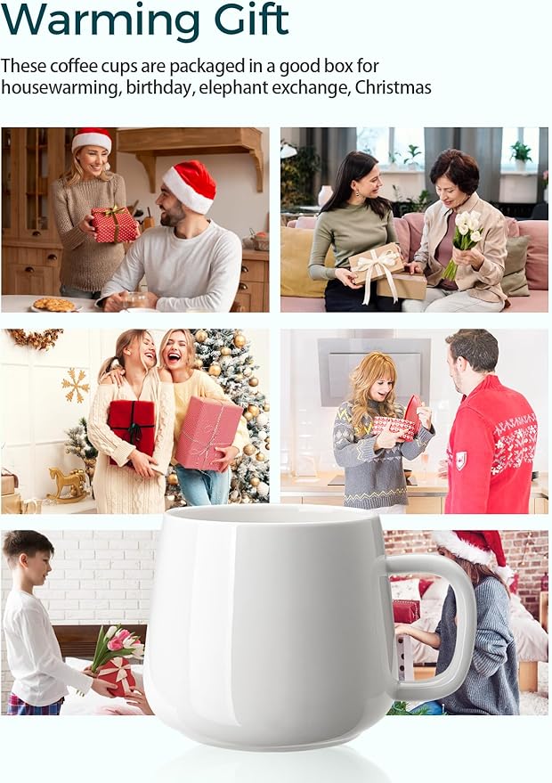 Teocera Coffee Mugs Set of 4-12oz Chip-Resistant Ceramic Cups with Ergonomic Handle | Dishwasher & Microwave Safe White Mugs | Keeps Beverage Hot, Perfect for Family Kitchen & Holiday Gifts