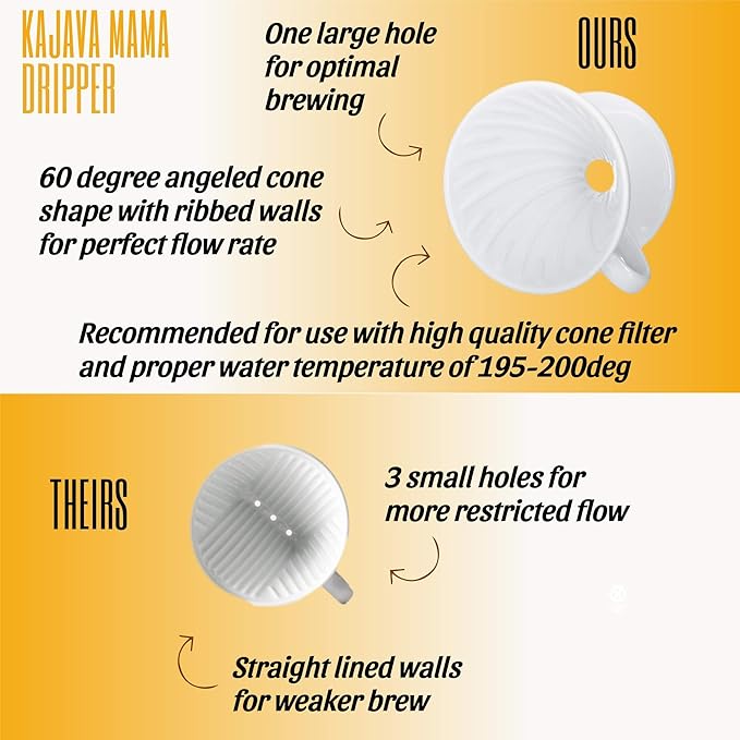 - ☕️FRESH & HANDCRAFTED COFFEE - The slow, pour over brewing method extracts all the rich flavors of ground coffee. Use with a high quality cone #2 paper filter or reusable mesh filter. Recommended Kajava Mama V02 filters - FILTERS NOT INCLUDED. SOLD SEPERATELY.