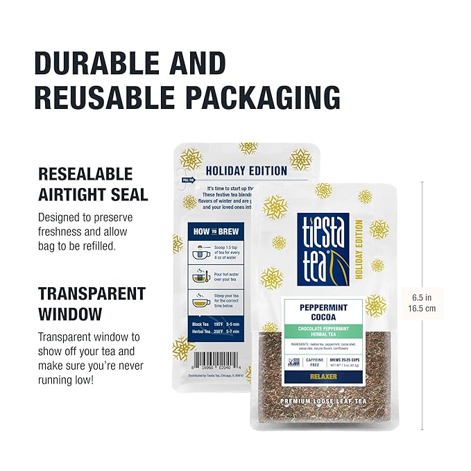Tiesta Tea - Cozy Peppermint Cocoa, Loose Leaf, Chocolate Peppermint Herbal Tea, Premium Non-Caffeinated Holiday Blend, Make Hot or Iced & Up to 25 Cups, 1.5oz Resealable Pouch