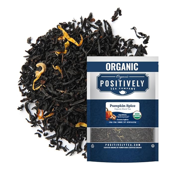 - BENEFITS - Our organic loose leaf Pumpkin Spice Black Tea is naturally high in antioxidants, polyphenols, amino acids, vitamins, minerals, caffeine and contains no additives, preservatives or colorants - simply naturally derived flavors and positivi-tea!