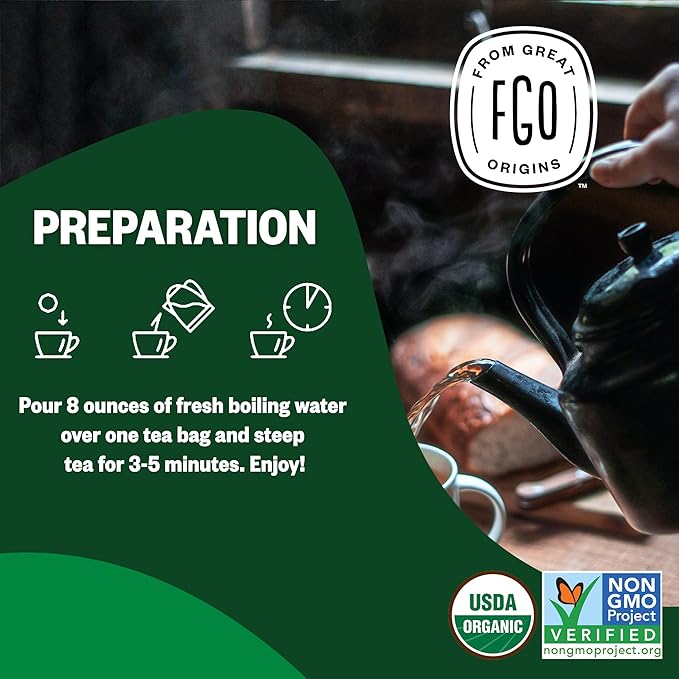FGO Organic Moringa Tea, 100 Count, Eco-Conscious Tea Bags, Resealable Bag, Caffeine Free, Packaging May Vary (Pack of 1)