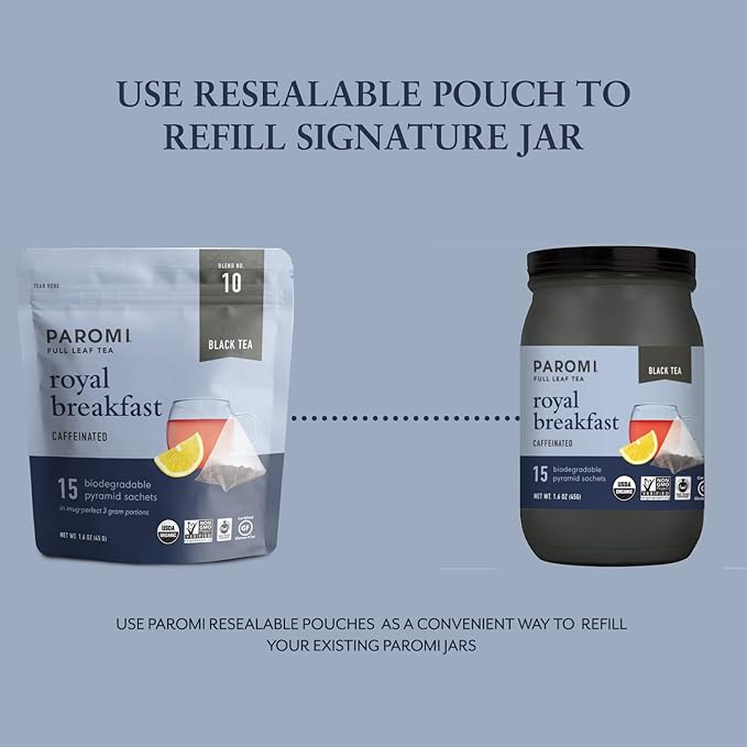 Paromi Royal Breakfast Organic Black Tea, Signature Jar, 15 Count (Pack of 6)