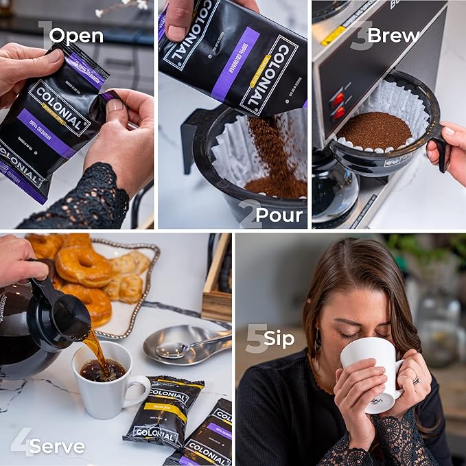 Colonial Coffee Packets, Pre Ground Coffee Packs, High Caffeine Blend, Medium - Dark Roast, Bulk Single Pot Bags for Drip Coffee Makers, (2.5 oz Bags, Pack of 100)