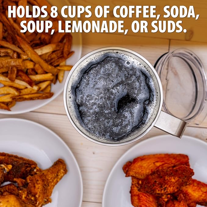 - REFRESHING ENERGIZING CONVENIENCE: Featuring a stainless-steel finish, and a jam dropping 8-cup capacity and a tight spill-preventing lid, this massive 10"-tall traveling beverage cup weighs 1.45 lbs. and fits in the front cup holders of most full-size cars and trucks. THE BASE FITS IN A 4" WIDE BEVERAGE HOLDER.