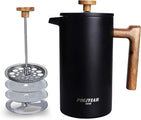 - LOOKING FOR COFFEE PRESS FOR MATCHING UP YOUR KITCHEN? We, the POLIVIAR french press coffee maker will be your smart choice. While the coffee pot is made from food grade stainless steel with stylish long-lasting coating, It is easily to match up your kitchenwares and your kitchen's theme. Also, the ergonomic handle with real wood will maximize the fantastic time of grounds you loved.