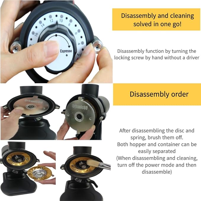 - Uniform and stable grinding Maintains coffee taste and aroma. It can be easily disassembled without tools and is convenient to clean. Equipped with an anti-static cap to prevent fluttering or clumping.