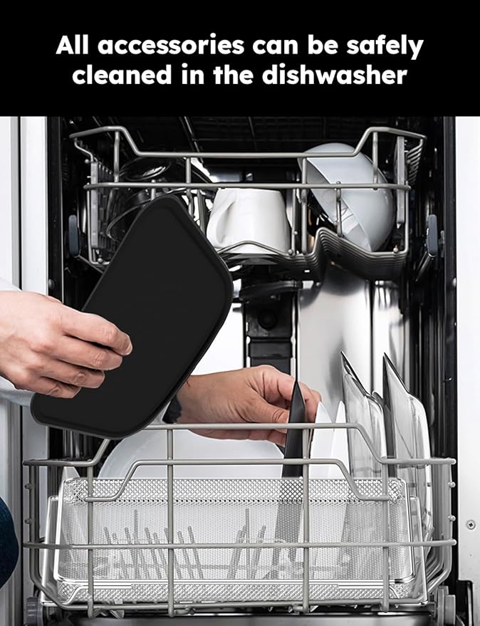 - LARGE CAPACITY FOR FAMILY SIZE - Features 4 rack positions and 7 cooking accessories, including Reversible Non-Stick Grill & Griddle, Rotisserie Basket & Skewer, Stainless-Steel Mesh Rack & Mesh Tray, Digital Temperature Probe, Drip Tray. The 15.5Qt large capacity makes cooking delicious meals for the entire family now easy. It’s the perfect combination of large capacity and function versatility.